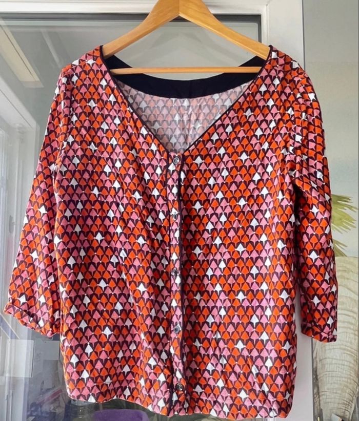 Jolie blouse manches 3/4 en coton étiquette composition coupé Dim : Aisselles à aisselles 53cm Très bon état