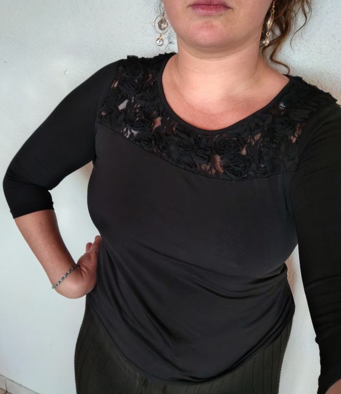 Beau tee shirt dentelle noir