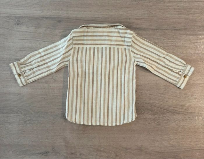 Vends chemise bébé garçon Marque : orchestra Taille : 6mois (67cm) Couleur : beige avec rayures En très bon état, voir photo