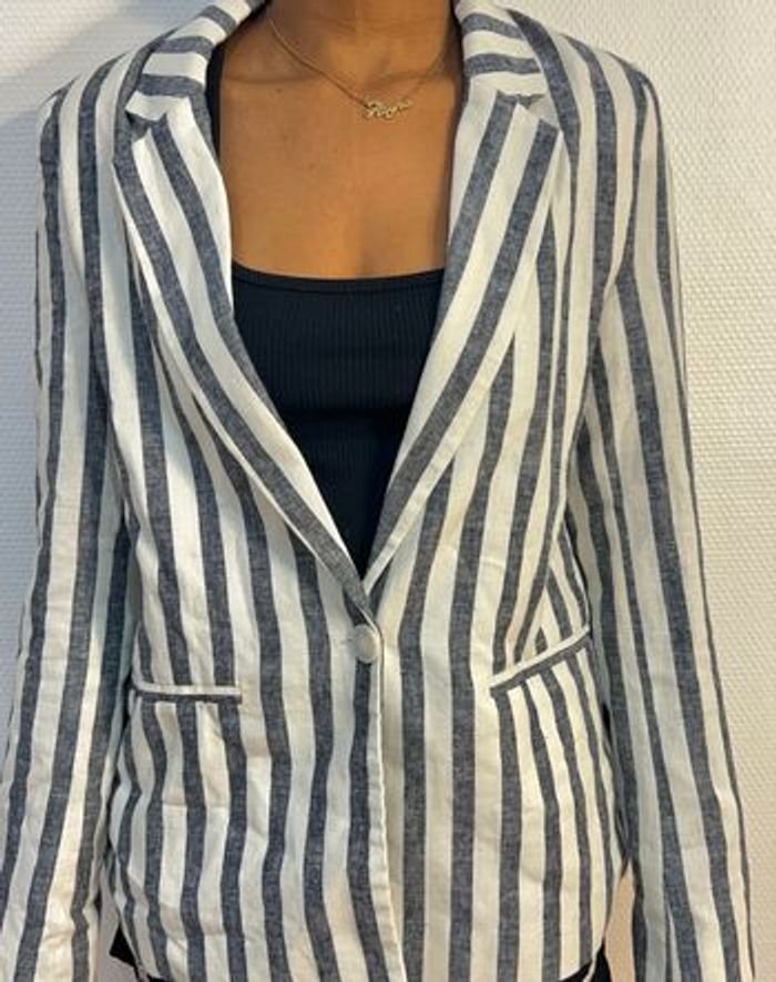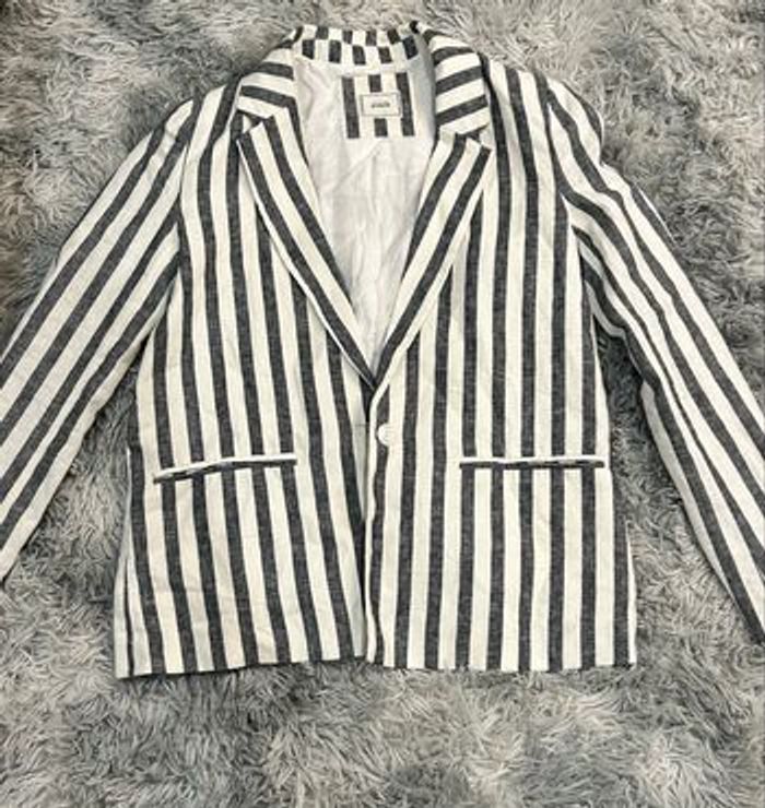 Blazer rayé, noir et blanc, léger et élégant, parfait pour un look chic. C’est maintenant ou jamais ! 🔥