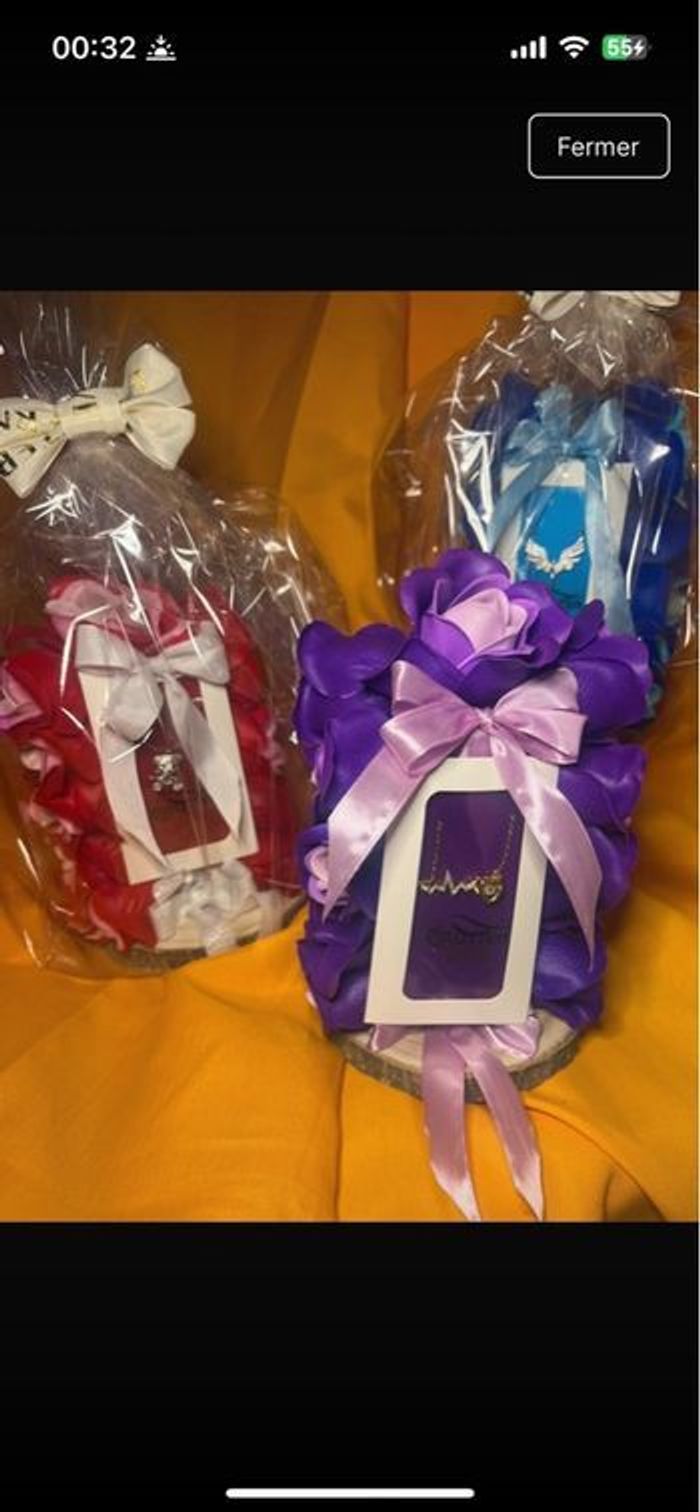Coffret en petales de savon pour se laver les mains avec un bijou choix bleu violet ou rouge 🎁cadeau dans chaque commande comme un bijou , masques pour le visage ou/et levres , porte clé et toujours une friandise comme une sucette un kinder ou mars twix…) 📦🕙 envoi le jour meme ou en moins de 24h Merci d’avance pour votre confiance 🤗🥰✨