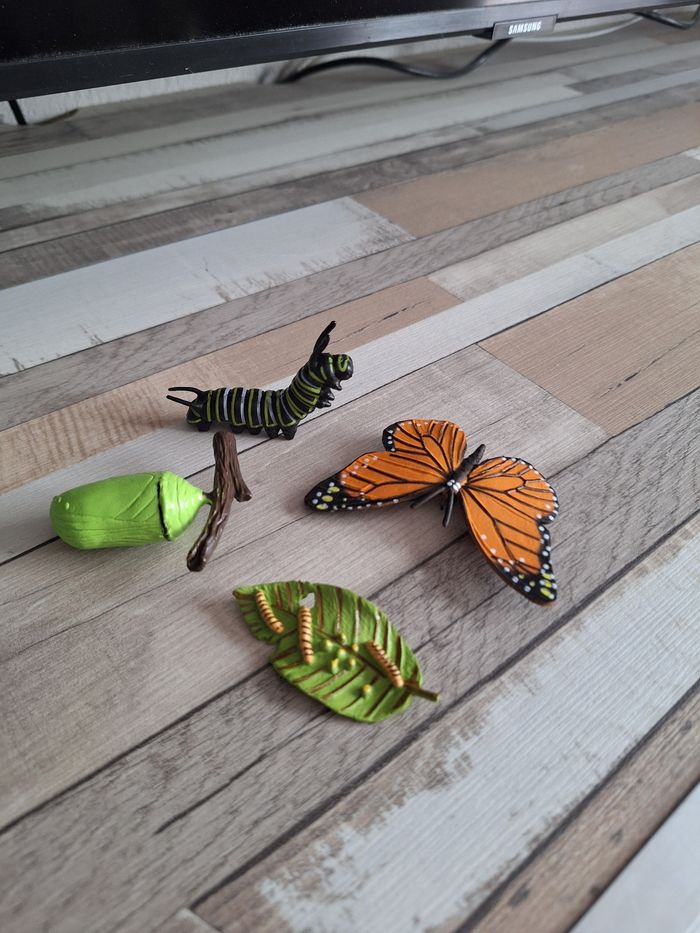 Cycle de vie papillon Figurine tres bon etat Materiel pédagogique pour sequence educative sur le thème du développement animal Utilisé aussi en bac sensoreil Assistante maternelle montessori Eveil bebe motricité materiel pédagogique educatif tickit hoptoys