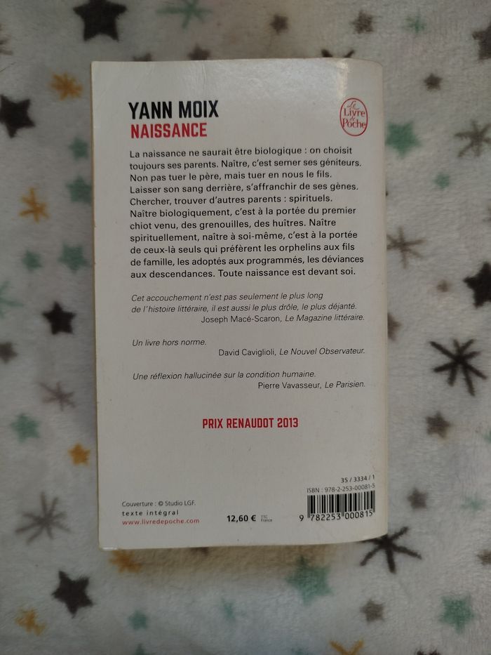 Roman 'Naissance' de Yann Moix. Prix Renaudot 2013. Bon état général, tranche jaunis, un coin abîmé. G723