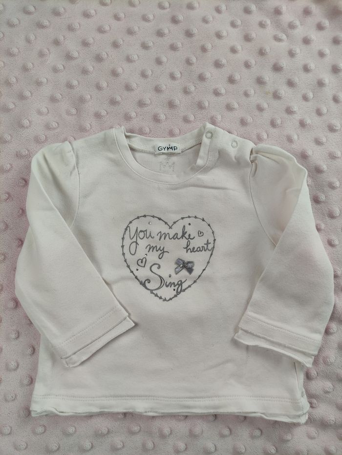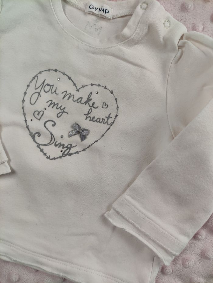 Pull léger blanc avec des strass et cœur Gymp taille 6 mois