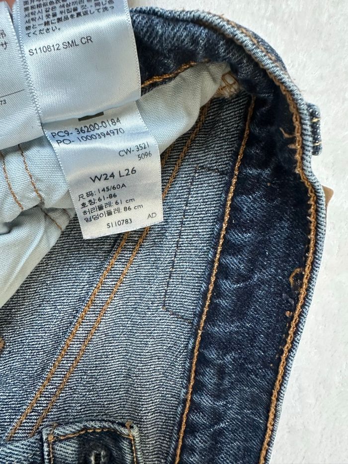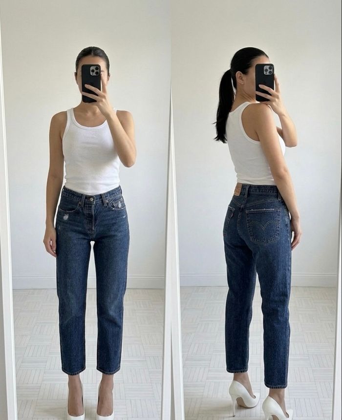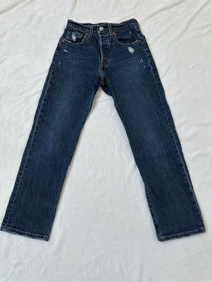 Levi's 501 classique dans un délavage indigo profond. Un incontournable pour un look intemporel et structuré. ✨ Points forts : • Coupe : Coupe droite iconique (Straight fit) qui sublime la silhouette. • Détails : Finition légèrement "distressed" (petites usures naturelles) sur le devant pour un style authentique. • État : Excellent état général, denim robuste et de qualité supérieure. • Style : Parfait avec des talons pour un look chic-décontracté (comme sur la photo) ou des baskets. 📏 Guide des tailles (Mesures à plat) : • Taille étiquette : W24 / L26 • Largeur taille : env. 30-31 cm • Largeur hanches : env. 40 cm • Largeur cuisse : env. 23 cm • Longueur totale : env. 88 cm ⚠️ NOTE IMPORTANTE : Veuillez vérifier attentivement toutes les photos et comparer les mesures avec l'un de vos jeans avant l'achat. AUCUN RETOUR NI ÉCHANGE ne sera accepté, peu importe le motif. Article vendu en l'état. 📩 N'hésitez pas à me contacter pour plus d'informations !