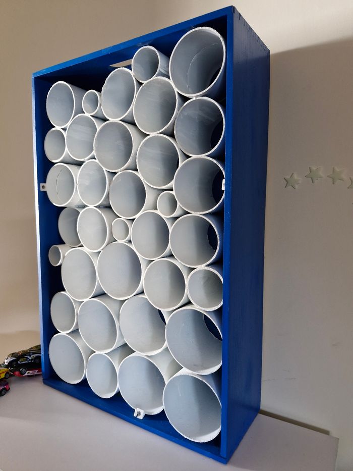 Bjr Je vends sur Notre Dame 37390 un garage fabriqué par mon papa : cadre et tubes. 40 x 60cm Prof 15cm PAS D ENVOI Possibilité de le fixer au mur, ou à poser Vends un lot de voitures à part