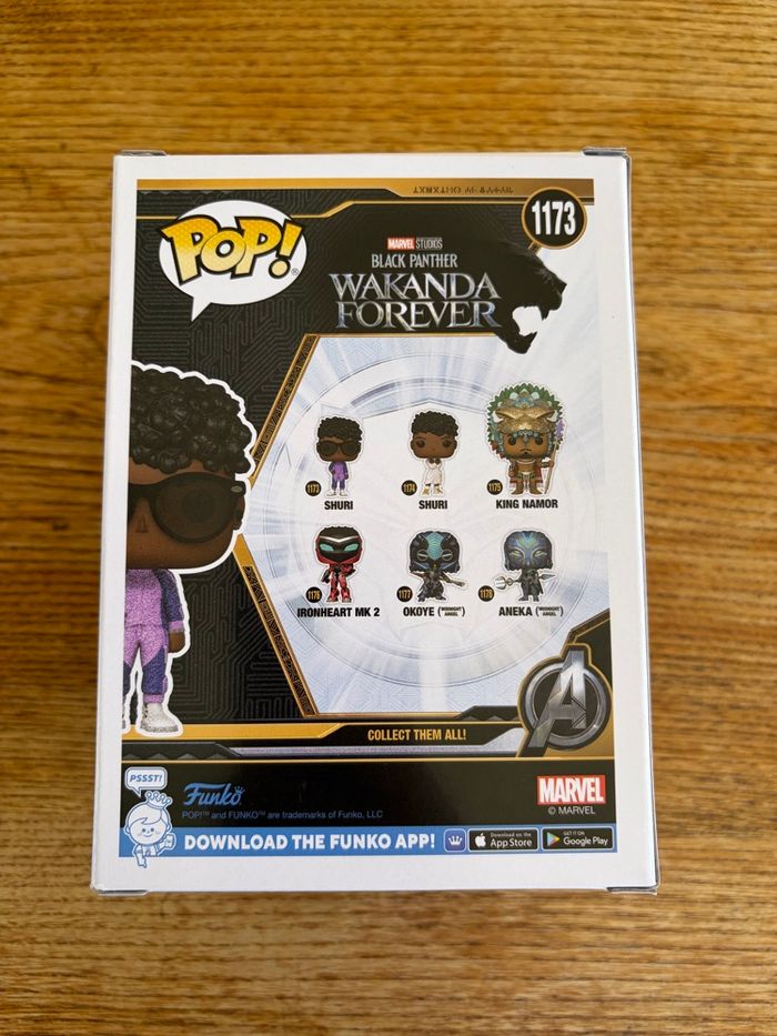 Figurine Funko Pop Shuri n°1173 issue de Black Panther: Wakanda Forever en version Diamond Collection (paillettes) ✨ Édition spéciale avec sticker Special Edition, idéale pour les collectionneurs Marvel 📦 État : bon état général • Boîte présente (voir photos) • Quelques légères traces d’usure sur les coins • Figurine intacte, jamais exposée hors boîte 🎁 Parfait pour compléter une collection Funko ou offrir à un fan de Marvel / Black Panther Envoi rapide et soigné