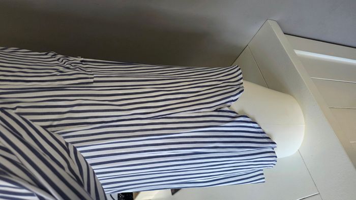chemise blanche à rayures bleues taille XL portée une fois état neuve épaules 44/45cm aisselles 57cm