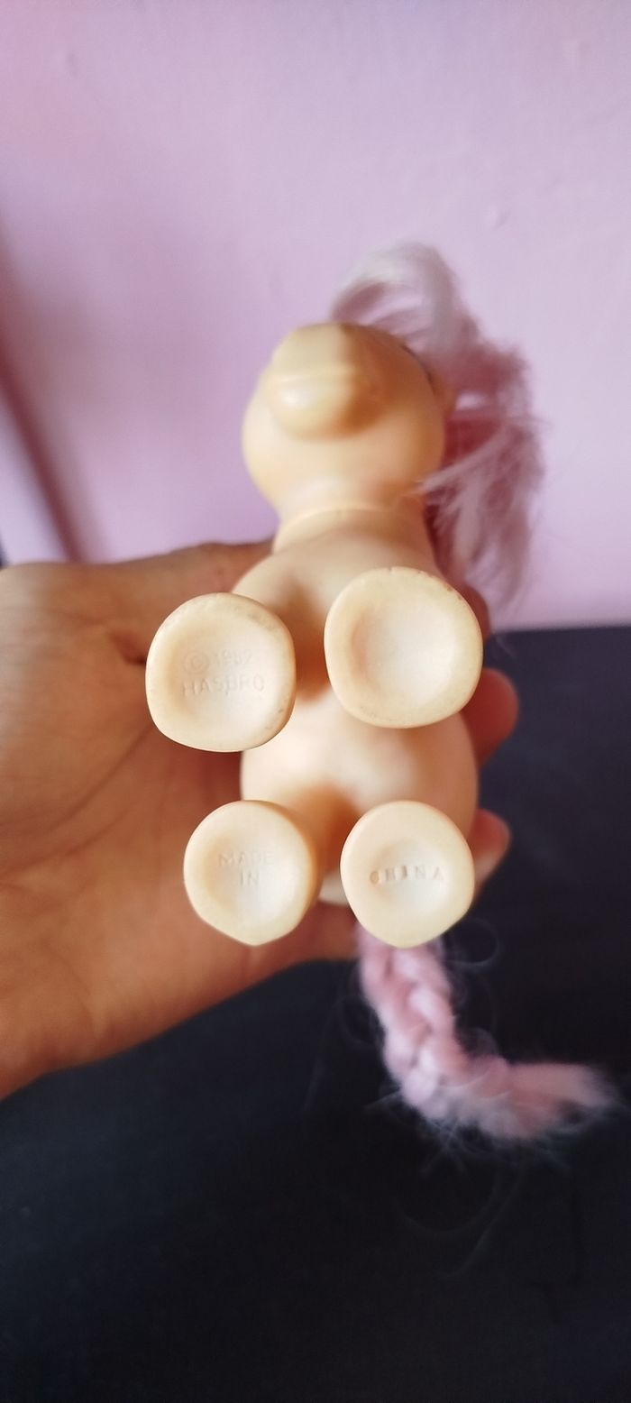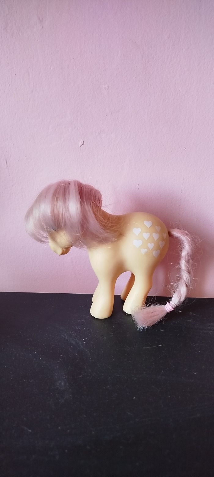 Bonjour, Je vend un petit poney nommé peachy datent de 1982 il s'agit de la g1 c'est la version crée en chine voir photo ci-dessous État : photo ci-dessous Vous achetez ce que vous voyez 😊