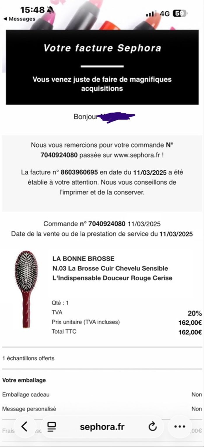 Bonjour, je vends ma brosse la bonne brosse numéro 3, je l’ai acheté sur Sephora, il y a la facture dans les images. La brosse est neuve, je m’en suis jamais servi.