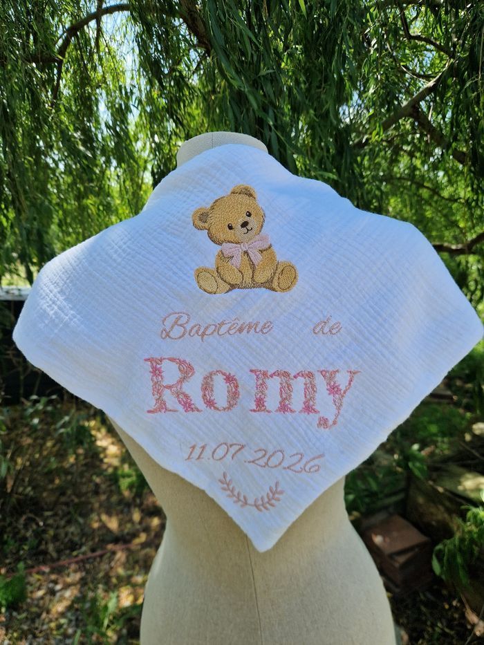 ✨ Offrez un souvenir unique et intemporel pour le baptême de votre enfant ✨ Cette magnifique cape de baptême personnalisée en satin est l’accessoire parfait pour sublimer la tenue de votre petite fille lors de son grand jour. Élégante, douce et raffinée, elle apporte une touche de poésie et de tradition à cette cérémonie si spéciale. 💛 Personnalisation unique Chaque cape est brodée avec soin avec le prénom de l’enfant et la date du baptême, pour créer un souvenir précieux à conserver toute une vie. 🕊️ Détails délicats Broderie fine et élégante (colombe ou croix au choix) Satin blanc lumineux et doux Finition soignée avec liens à nouer Coupe confortable adaptée aux bébés et jeunes enfants 👗 Idéal pour : Baptême religieux ou civil Cérémonie, fête, shooting photo Cadeau de naissance ou de marraine/parrain 📸 Parfait pour des photos inoubliables, cette cape apporte une touche chic et authentique à la tenue de votre enfant.