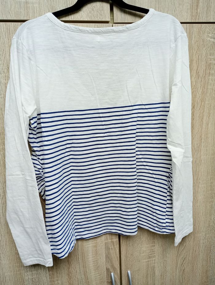 Blouse de grossesse à longues manches. Taille : indiqué 46-48 mais la marque taille petit. Je dirai plus un 44-46. Marque : Vertbaudet. Longueur : 63 cm. Largeur : 55 cm. Longueur des manches : 62 cm. Etat impeccable.
