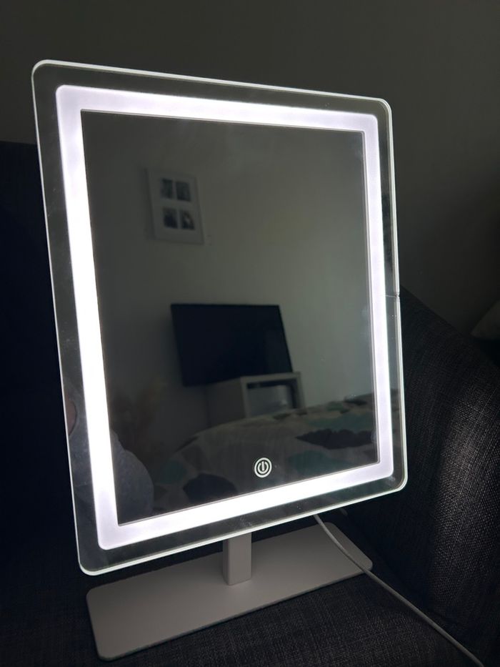 Vends miroir très bon état général. Aucunes rayures, il y a 3 modes de différentes couleurs ou l'on peut diminuer et augmenter la luminosité. Chargeur inclus Remise uniquement en main propre