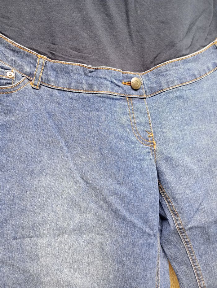 Jeans de grossesse bleu. Convient aux grandes car grande longueur. Taille : Indiqué 46 EUR 48 FR mais taille petit. Je dirais plutôt un 44/46. Marque : Vertbaudet. . Longueur totale : 120 cm. Longueur jeans : 106 cm. Largeur jeans : 50 cm. Entrejambe : 82 cm. Etat impeccable.
