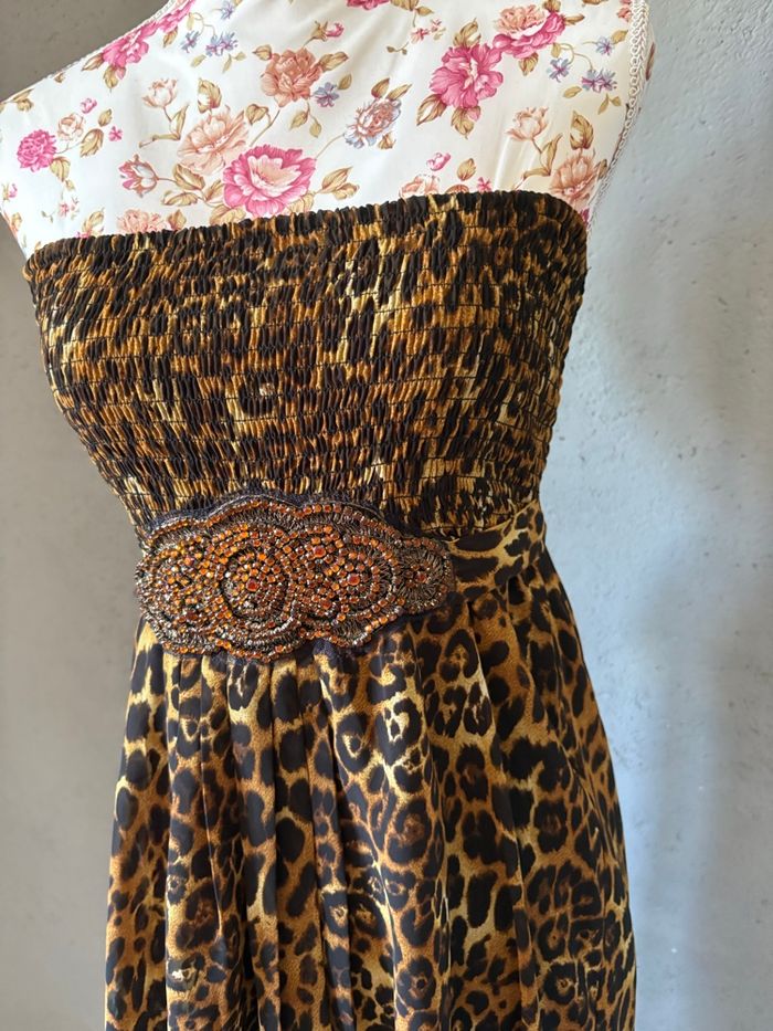 Robe beige léopard Double Y - Taille 36 S - Vintage Y2K