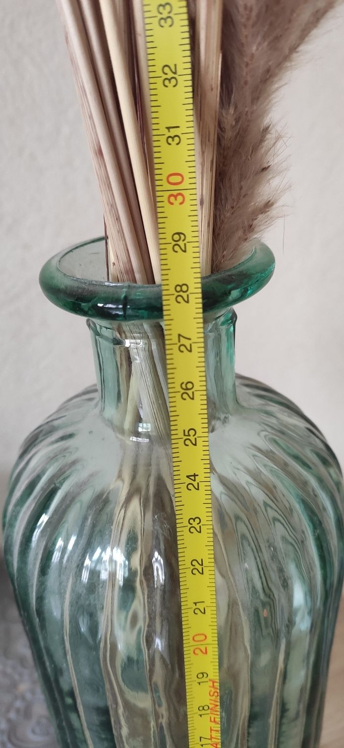 Je vends ce vase en verre teinté vert avec un bouquet de pampas séchées, pour apporter une touche bohème et naturelle à votre intérieur. Dimensions sur les photos. Envoi possible.