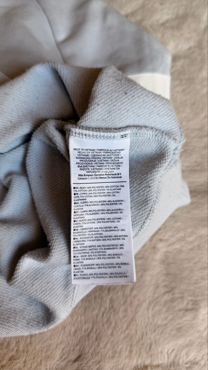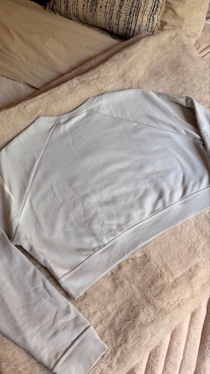 Marque: Nike sweat oversize crop top bleu ciel laille: M État: Très bon état Dimensions: Longueur: 55cm Épaule au bas: 42cm Épaule à épaule: 42 cm Technologie Dri Fit