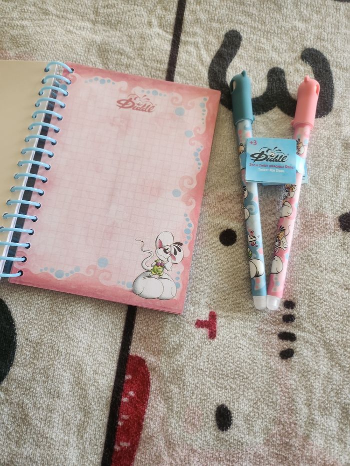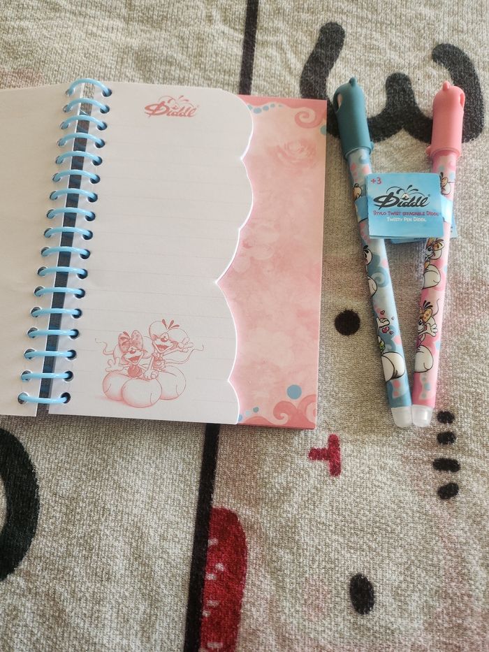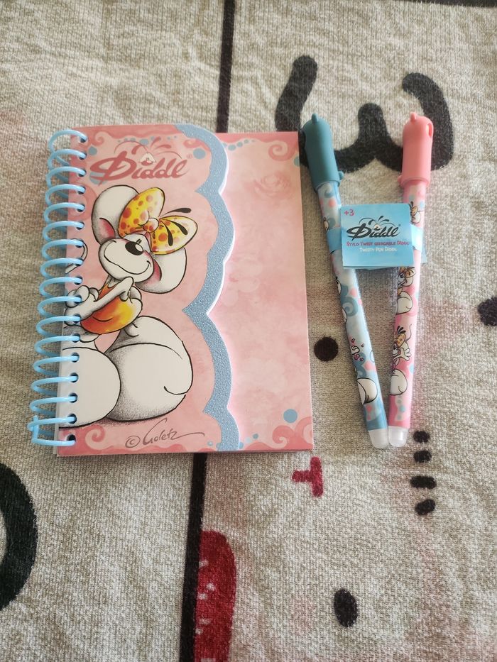 Lot carnet forme + 2 stylos diddl