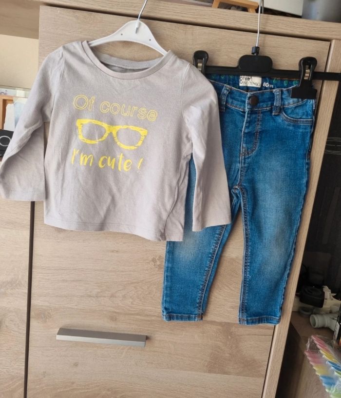 Ensemble chemise tape à l œil jeans kidkanaï 18 mois