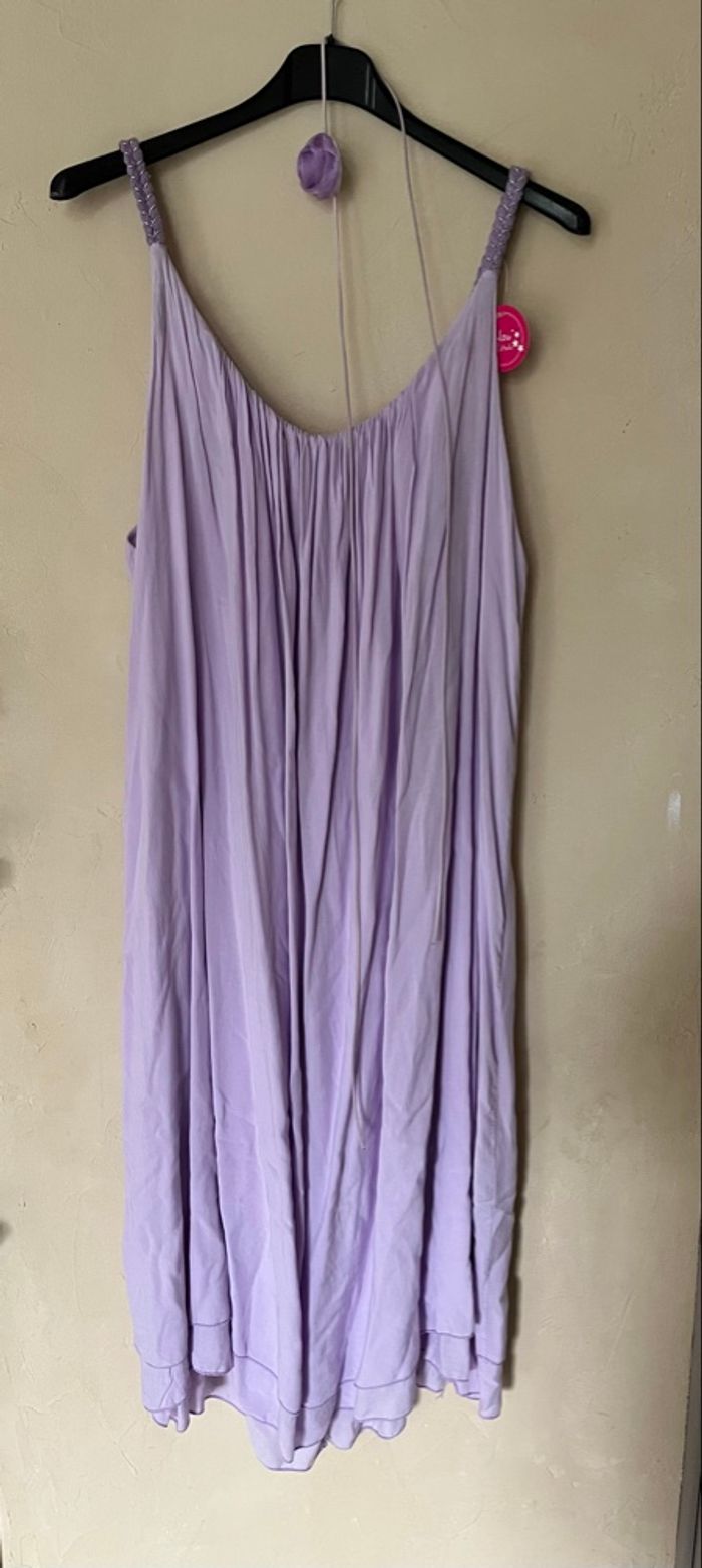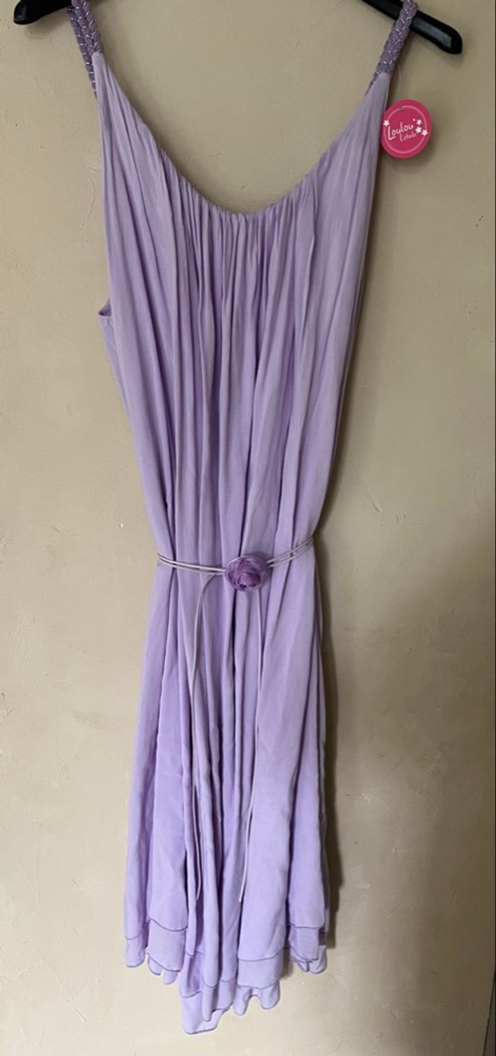 Très jolie robe Peut parfaitement convenir pour une cérémonie Entièrement doublée Peut être ceinturée par la ceinture fleur ou la fleur peut être portée en collier ou bracelet Très douce Jamais portée Je vends des boucles d oreilles assorties