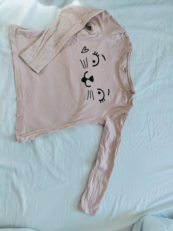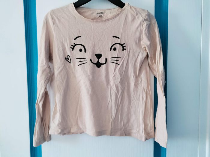 #tshirt #mancheslongues beige avec motif tête de #chat