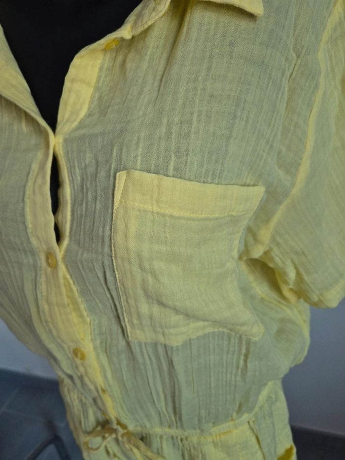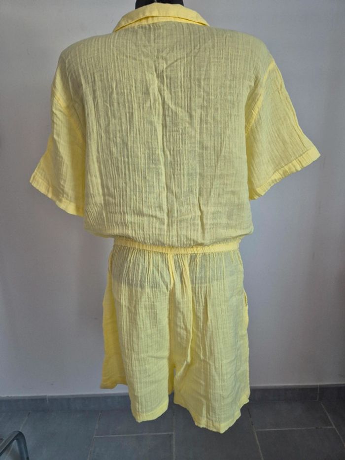 Combishort jaune manches courtes en gaz de coton femme XL - Promod 🎀