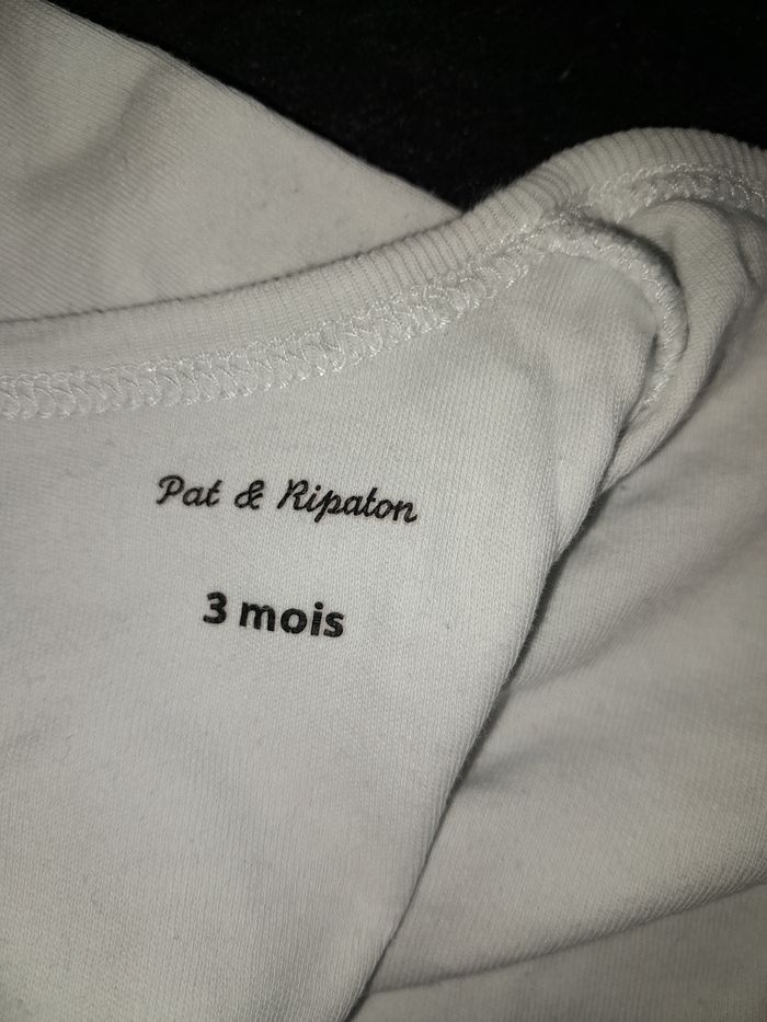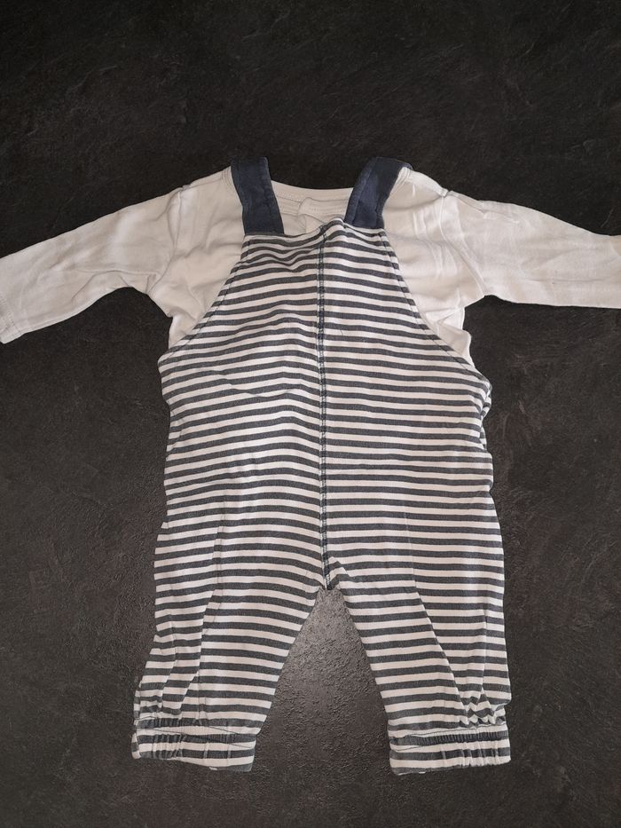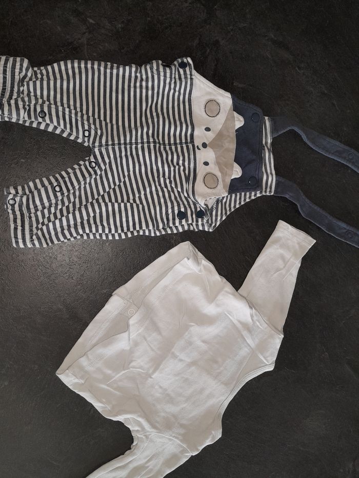 Ensemble salopette et Tee-shirt blanc. Le Tee-shirt s'ouvre au dos Taille 3 mois. Pat et ripaton