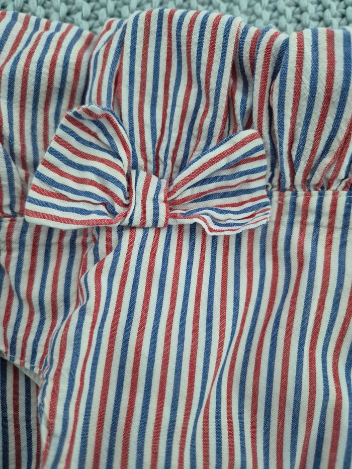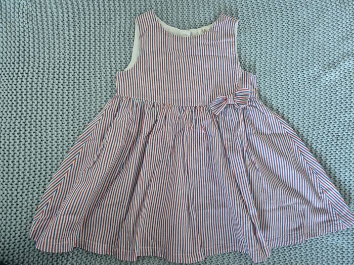 Robe blanche à rayures rouges et bleues. Nœud à la taille. Marque H&M. Taille 6-9 mois (taille grand) #mimidacfille #mimidacfille9mois #mimidacfille12mois