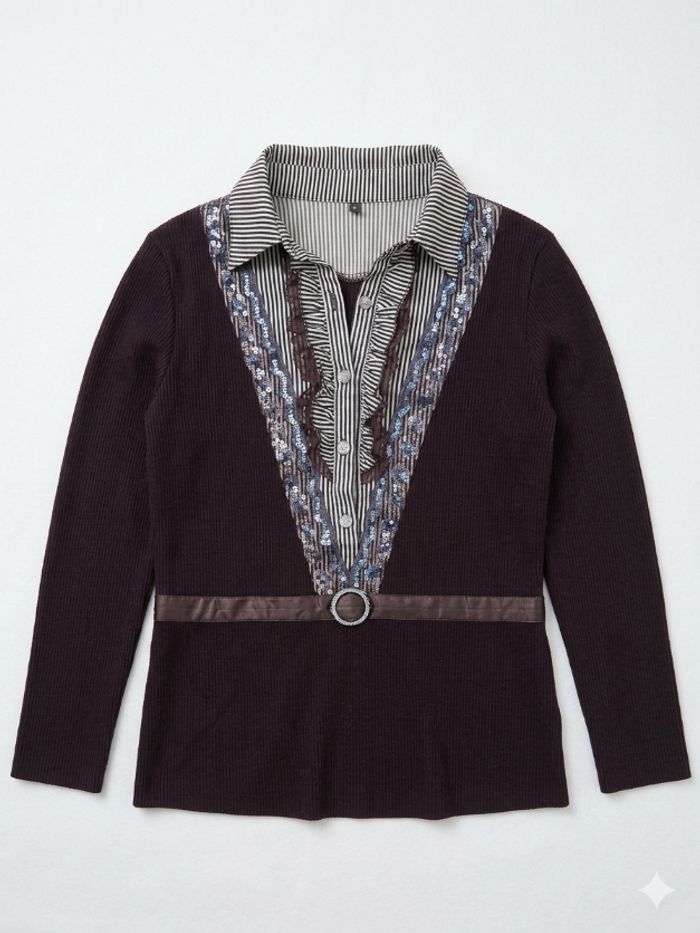 Pull avec col en chemise intégrée. La taille est marquée XL mais c'est du M.