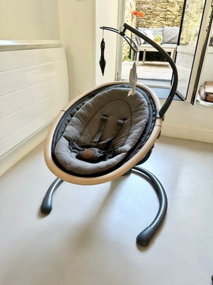 Balancelle cassia / Maxicosy En très bon état. Pas de tache Carton d’origine. N’hésitez pas à me contacter pour plus d’infos et de photos. Balancelle électrique utilisable de la naissance jusqu'à 6 mois (environ 9 kg) - Réglable en position fixe ou balancelle - Détection automatique de mouvements siège pivotant à 360° - coussin réducteur pour nouveau-né - 2 options d'inclinaison - harnais de sécurité 3 points rembourré - 5 vitesses de balancement ainsi que 12 mélodies et sons de la nature apaisants - Tout est déhoussable et facile à nettoyer - Très légère, donc facilement déplaçable   Neuf 190€ Vendu 85€
