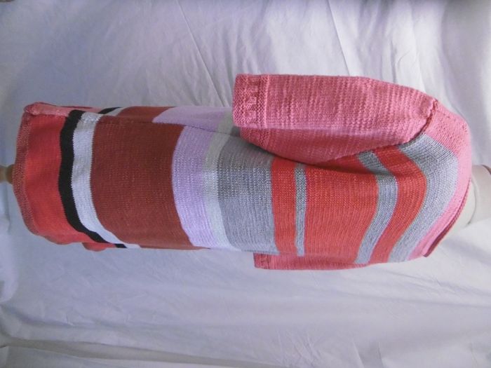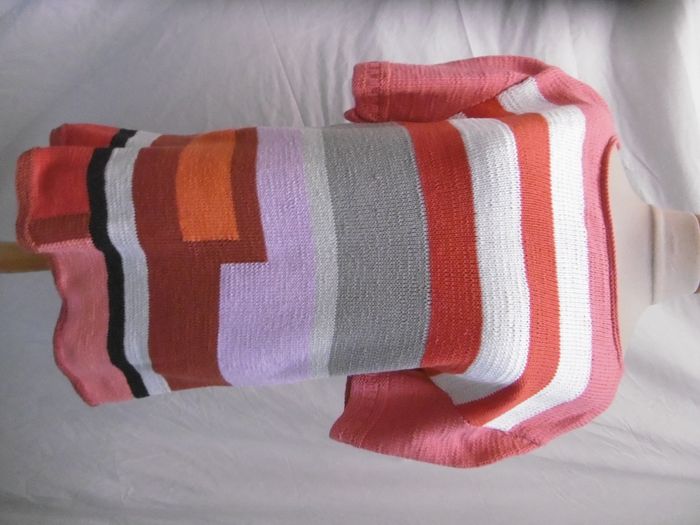 pull de printemps fait main tout coton dessin de maille graphique multicolore , ni taches ni trous hauteur=70 cm sous aisselles=52 cm T 38