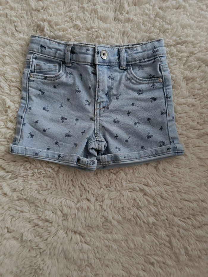 Short en jean bleu motif palmier in extenso taille 3 ans