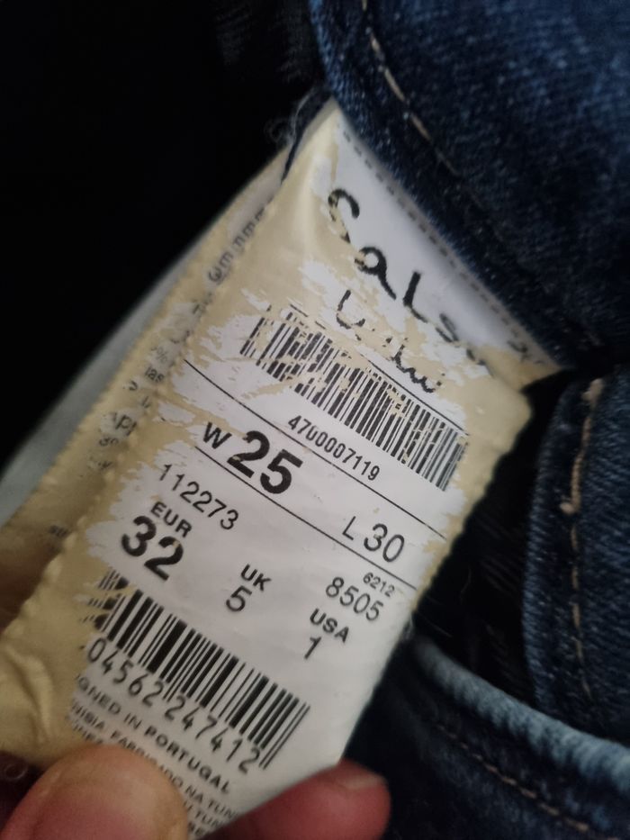 Jeans skinny femme, HPK, taille S 36, 98% coton, strass cerises
