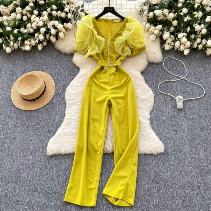 Combinaison chic avec manches sous forme de rose🌹