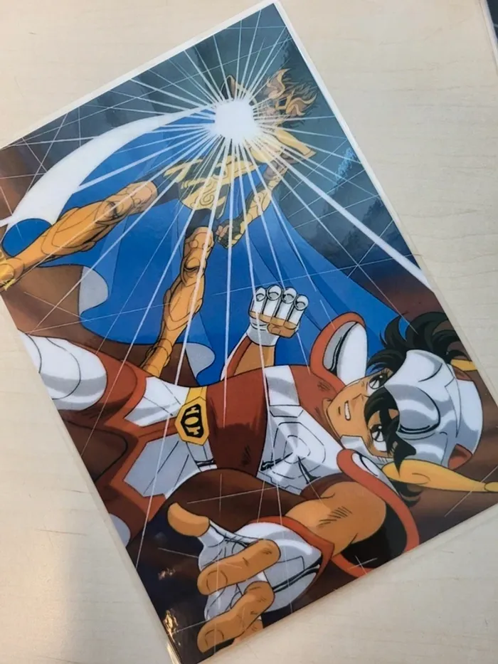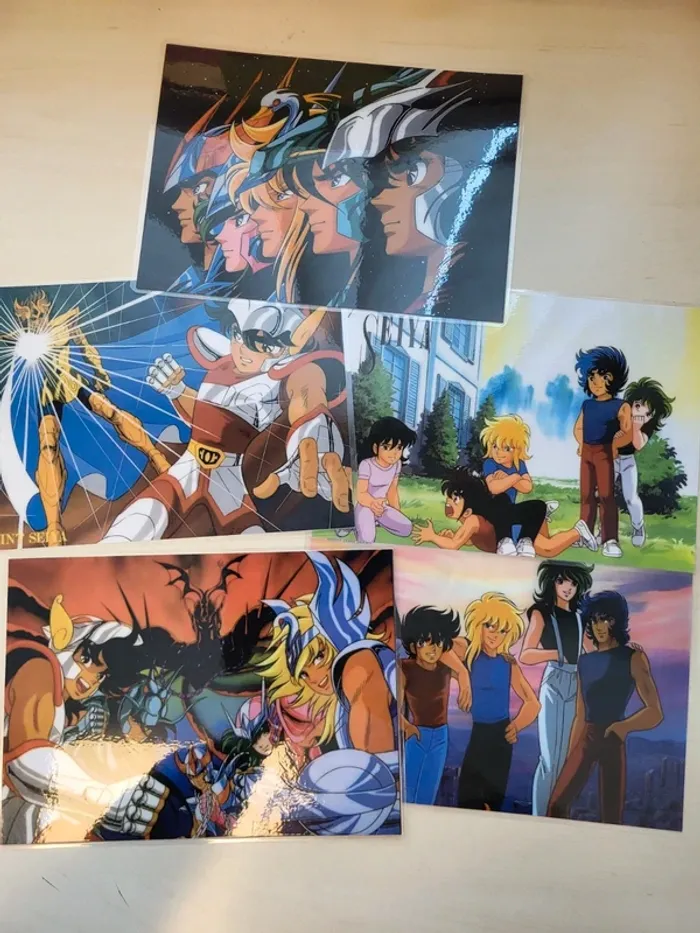 5 cartes plastifiées saint seiya 15x21cm environ