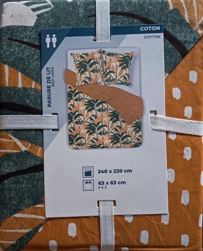 Parure de lit neuve 240x220 avec deux taies d'oreiller 63x63 100% coton
