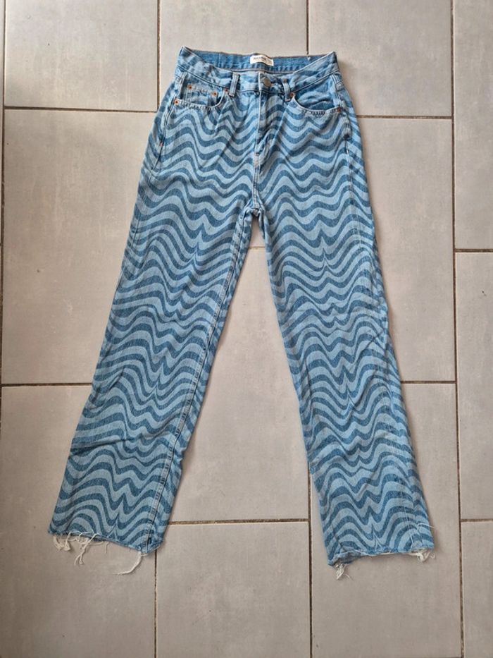 Jean droit imprimé psychédélique femme M Pull&Bear 🎀 - photo numéro 1