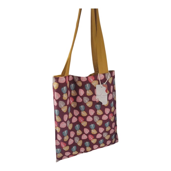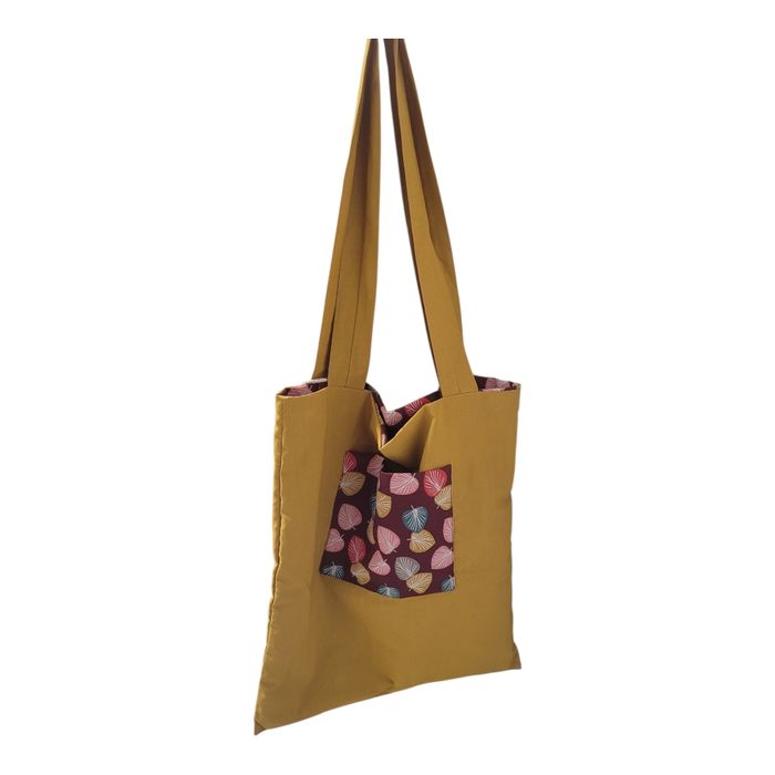 Tote bag réversible Un côté uni avec inscription "J'peux pas j'ai piscine" et une poche extérieure. Une fois retourné tote bag classique tout en motif avec une poche intérieure. Neuf