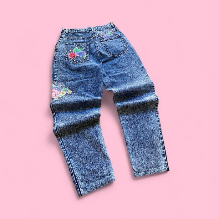 Jean Taille Haute à  Fleur et petit Strass- Taille 40 - photo numéro 3