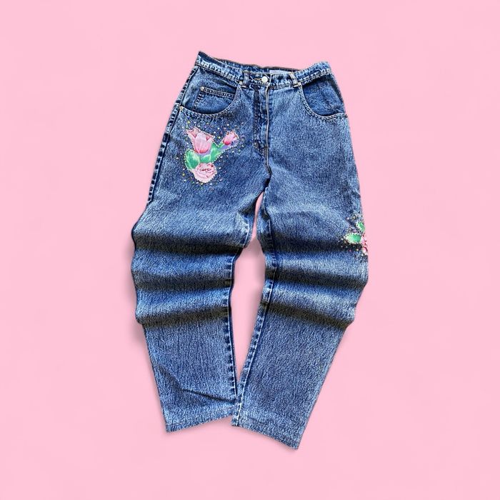 Jean Taille Haute à  Fleur et petit Strass- Taille 40 - photo numéro 1