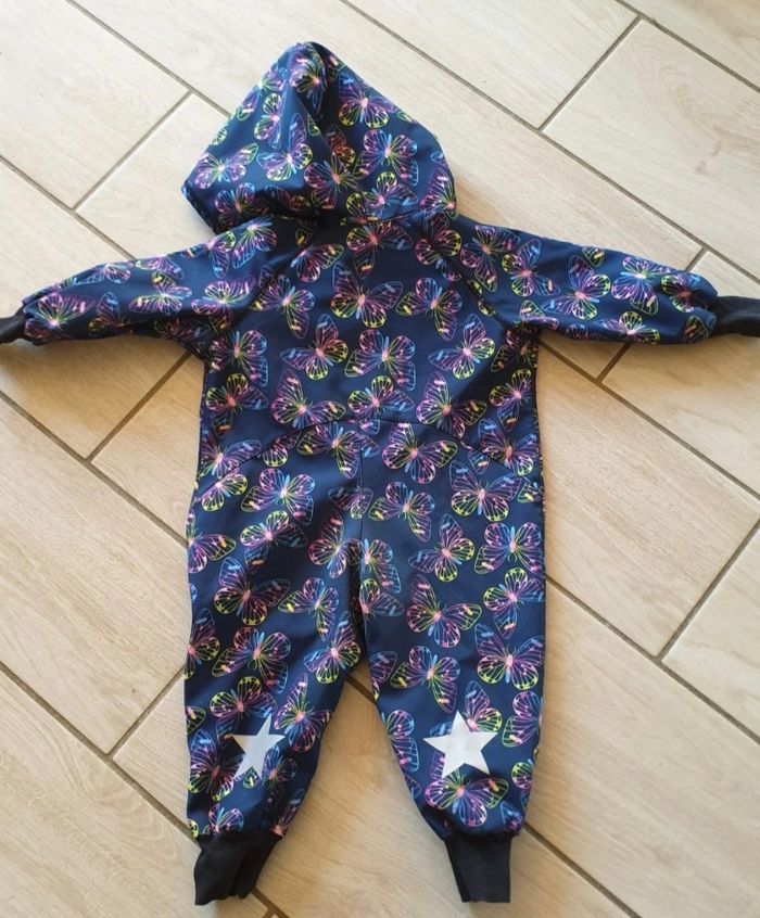 État excellent. Bleu marine, papillons. Taille 86. A partir de 18 mois. C'est devenu petit avant 2 ans et demi de mon enfant