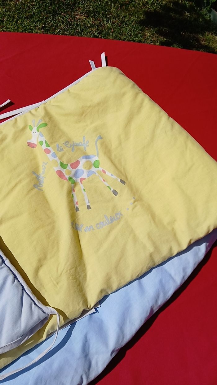Tour de lit, de marque tex très bon etat avec liens pour attacher au lit. Couleur jaune et bleu