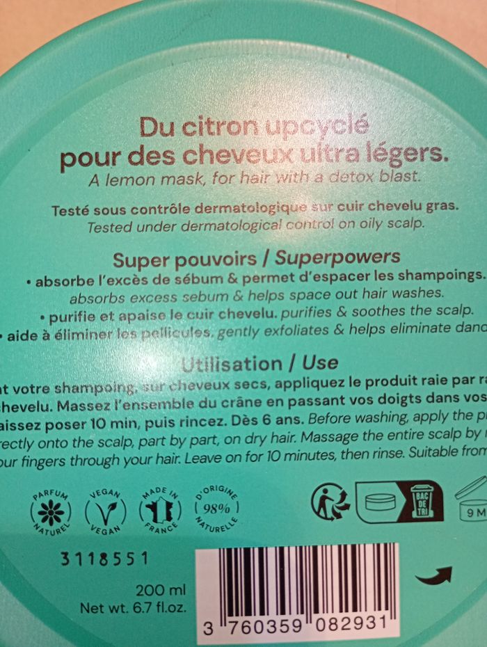 Masque détox cuir chevelu Neuf jamais ouvert 200ml S utilise 6 mois après ouverture