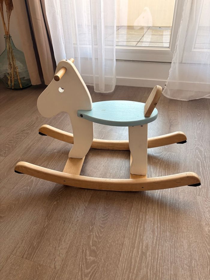 Cheval (âne) à bascule gris et bleu ciel Nattou