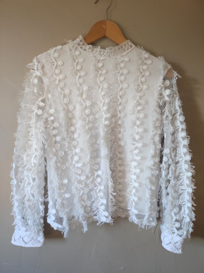 Top à plumes blanc taille S/M - photo numéro 3