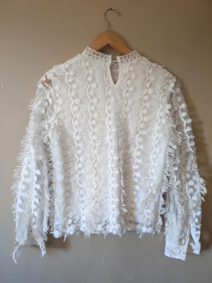 Top à plumes blanc taille S/M - photo numéro 4