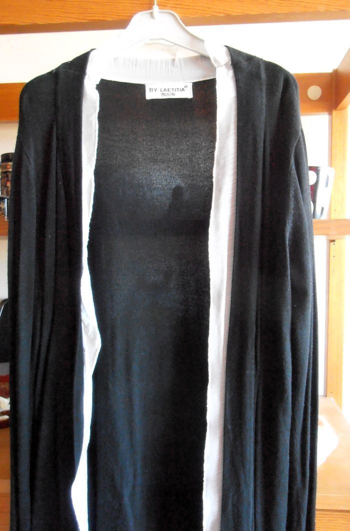 Gilet long noir femme, By Laetitia, taille S 36, cardigan