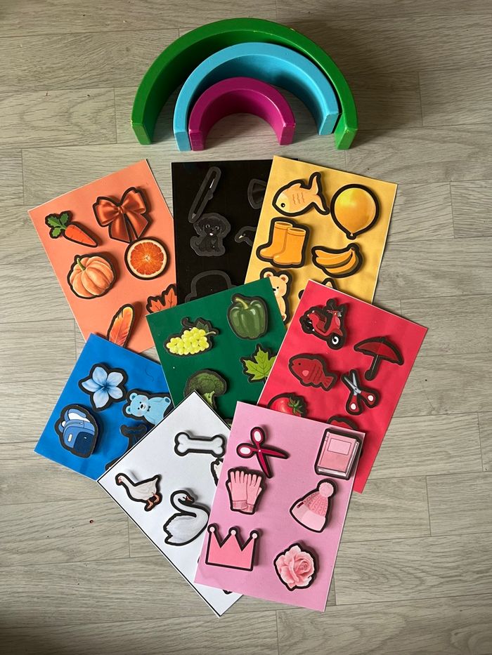 8 fiches format A5 – thème couleurs 🌈 Chaque fiche contient 6 éléments à scratch à replacer