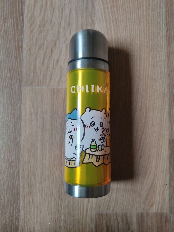 Thermos Chiikawa neuf. Jamais utilisé. Il y a des traces visible à la lumière dû à la matière.