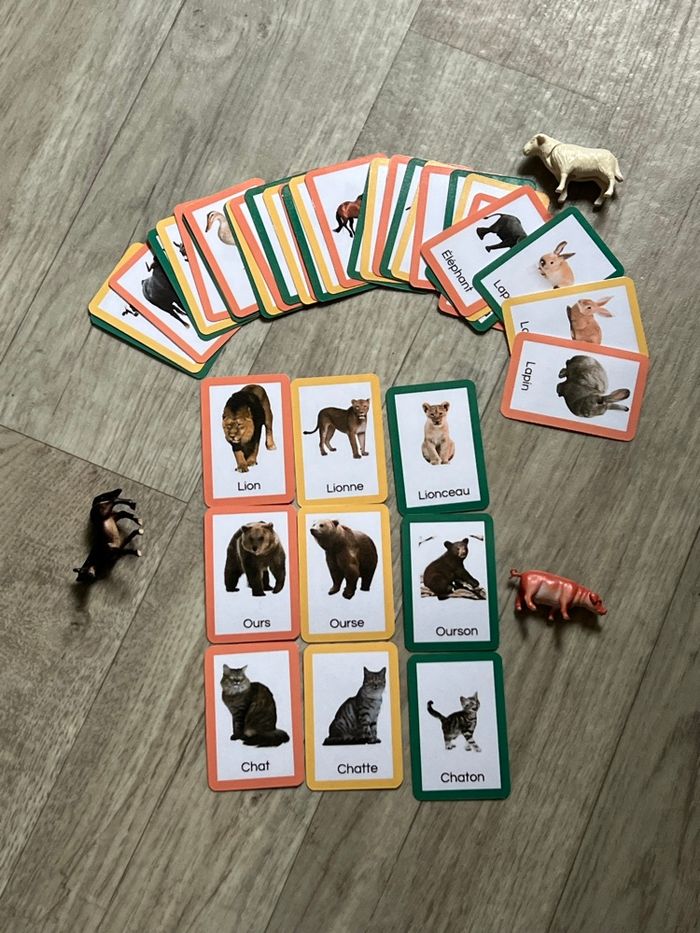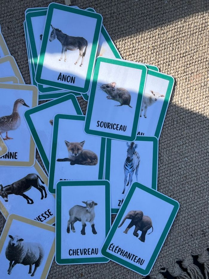 63 cartes - Les familles d'animaux 🐥 Pour chaque animal une carte mâle, femelle et bébé ! L'enfant peut associer les cartes pour reconstituer chaque famille 🐑 Support en bois inclus pour avoir un visuel ! Top pour développer et enrichir le vocabulaire ! Images animaux réalistes ! Cartes plastifiées #Montessori #JeuEducatif #ApprentissageLudique #FamillesDanimaux #CartesAnimaux #ÉveilEnfant m #CartesPédagogiques #VocabulaireEnfant #ActivitéEnfant #MatérielÉducatif #IEF
